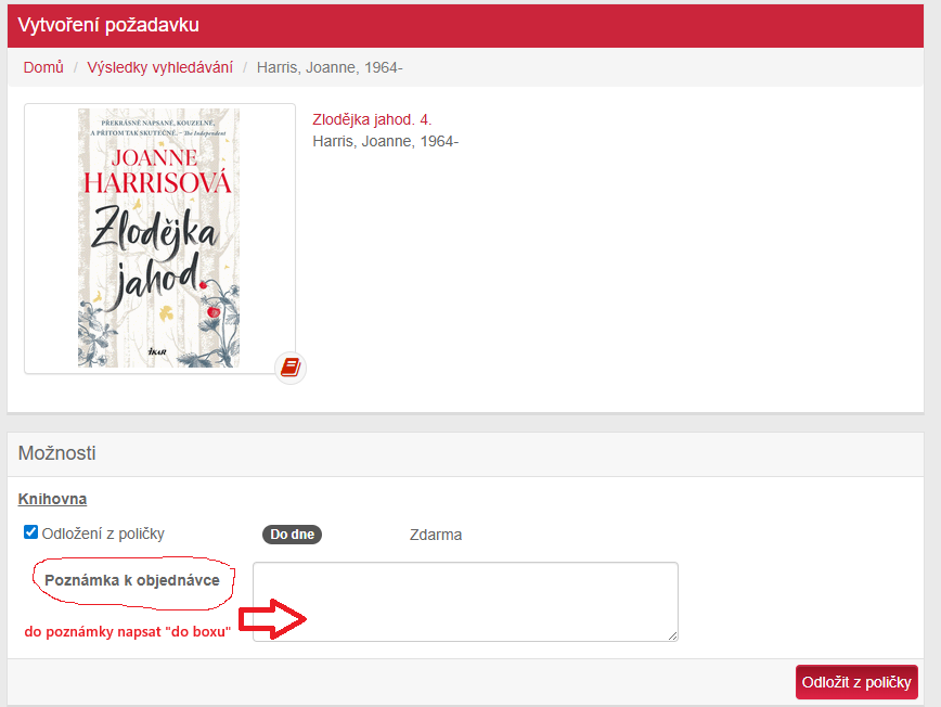 Pokud nestíháte otevírací dobu knihovny, máte možnost vrátit knihy do biblioschránky a pokud si chcete knihu naopak vypůjčit, stači si ji přes on-line katalog objednat, dát vědět, že ji chcete do boxu a přijde vám SMS s kódem a návodem, jak si knihu vyzvednout.